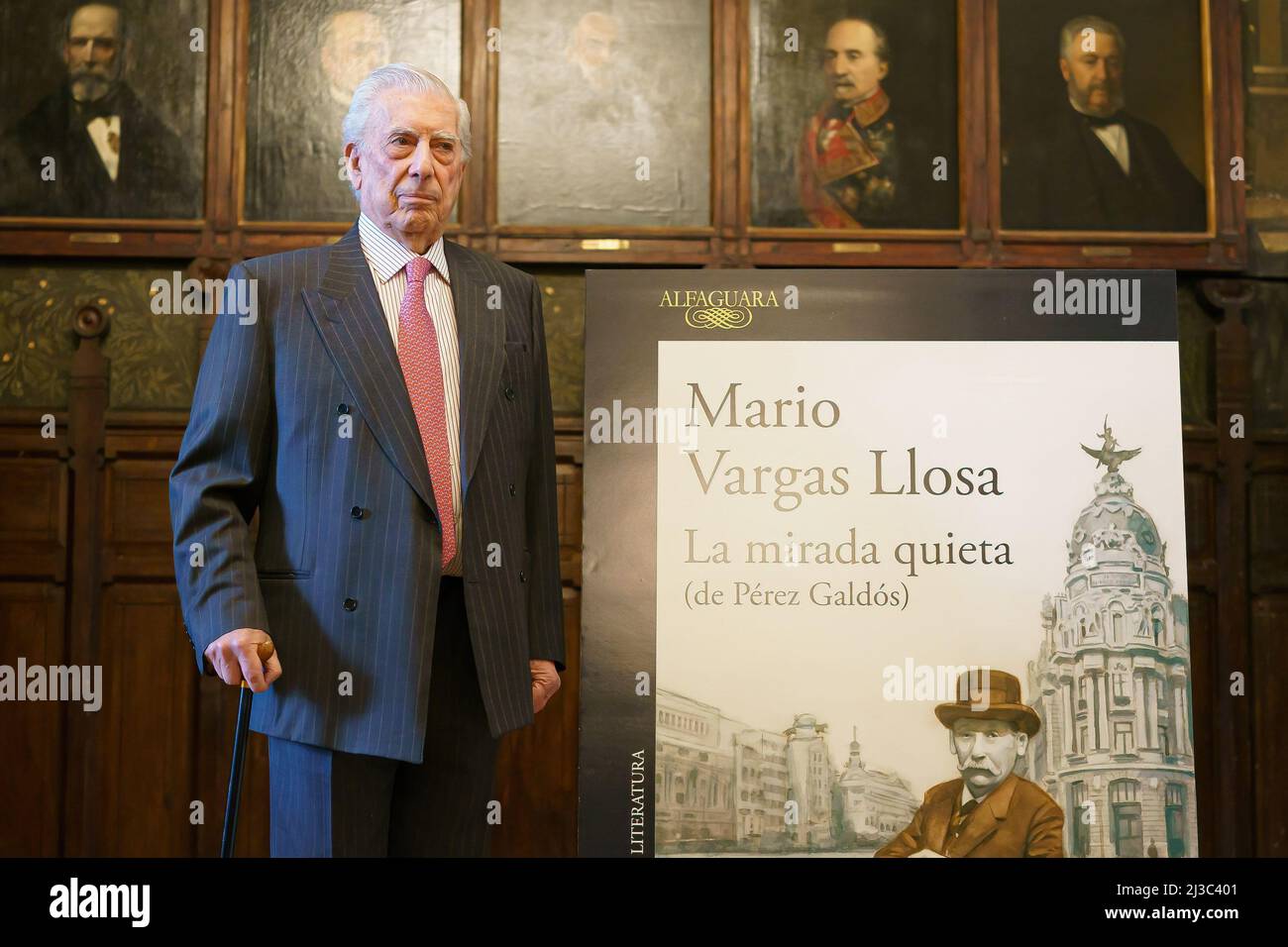 Madrid Espagne 07th Avril 2022 L Ecrivain Et Laureat Du Prix Nobel Mario Vargas Llosa Presente Le Livre The Still Regard By Perez Galdos La Mirada Quieta A L Ateneo De Madrid En Espagne